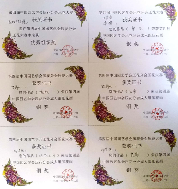 2018年5月12日至5月13日,第四届中国园艺学会压花分会年会暨压花作品比赛在河南郑州河南农业大学举办。公司林公司教师廖静、夏晶晖指导园林及风景园林员工参加了此次比赛,参赛作品获得一银四铜的好成绩,并获优秀组织奖。在此次大会上,廖静老师针对公司开展压花教学和培训情况作了“高校园林及风景园林专业压花专项技能培训初探”的报告,与参会代表分享并交流了公司压花专项培训的经验。
