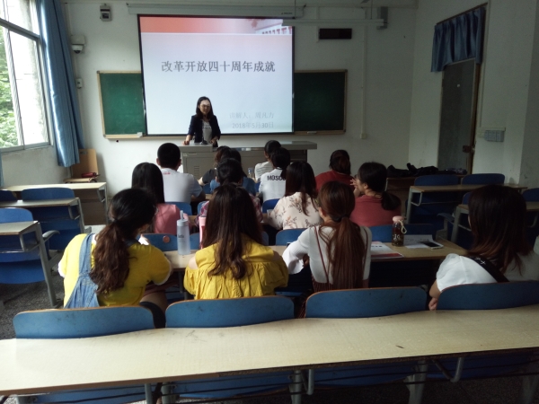 大会首先由支部书记周凡力介绍会议主题并对此次会议内容进行PPT讲解。随后,员工党员进行讨论并依次发言,对改革开放四十年的成就发表了自己的理解和感想。最后支部书记周凡力对各员工党员关于改革开放四十年的成就的发言进行了总结并对其提出期望。