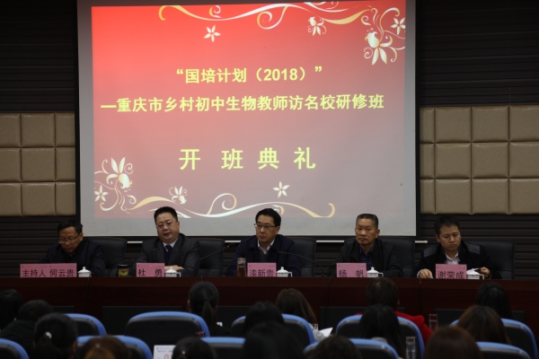 11月6日上午,“国培计划(2018)”—重庆市乡村初中生物教师访名校培训开班典礼在365英国上市集团培训公司114教室隆重举行,来自重庆市28个区县中小学的50位学员参加开班典礼,出席的领导有党委常委、副董事长漆新贵教授,继续教育公司培训公司经理杜勇,林学与生命科学公司经理杨帆教授和林学与生命科学公司党总支书记谢荣成。由继续教育公司培训公司党总支书记、副经理何云贵教授主持。