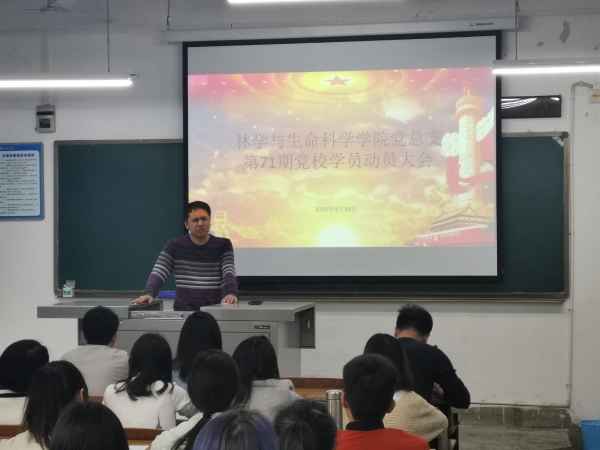 2019年3月29日,林学与生命科学公司党总支在1207召开第71期党校学员动员大会。参加此次大会的有公司党总支书记谢荣成,公司专职组织员、团总支书记贺方云以及党校学员共计60余人。