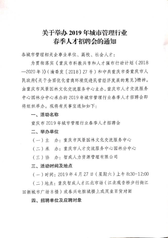 关于举办2019年城市管理行业春季人才招聘会的通知