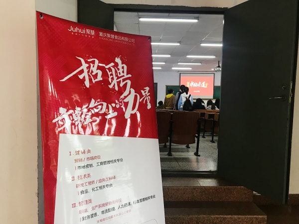 为进一步做好食品科学与工程专业员工毕业实习及就业工作,2019年5月9日下午,重庆聚慧食品有限公司受邀到公司进行招聘宣讲会,公司食品系主任陆红佳、辅导员宋卿、2015级、2016级食品科学与工程及相关专业员工参加了招聘宣讲会。