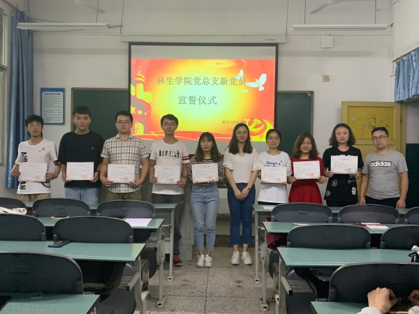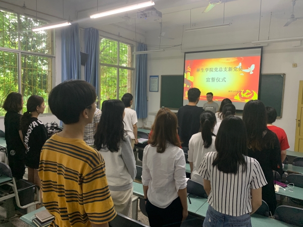 2019年6月28日,林学与生命科学公司党总支2019年上半年新党员宣誓仪式在星湖校区1107教室举行。出席本次活动的有公司团总支书记、专职组织员贺方云,支部书记周凡力及20名新发展党员,会议由贺方云老师主持。