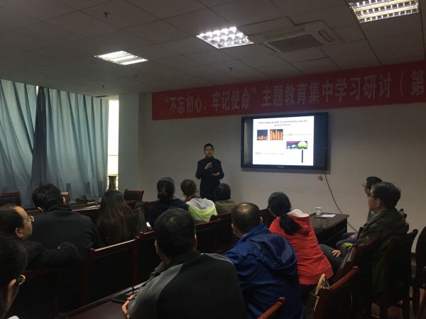 首先陈泽雄简要介绍了黄腾波教授的研究经历及研究成果,随后黄腾波教授作题为“植物器官发育的转录及转录后调控机理解析”的学术报告,讲述了番茄等植物器官生长发育的分子调控机理,分析了调节叶片、花器官及果实发育的小RNA和关键转录因子的下游基因网络及其相互关系及其应用价值。报告结束后,科研人员根据自己的研究课题及目前生命科学的热点问题向黄教授踊跃提问,黄教授进行了逐一解答和讨论。
