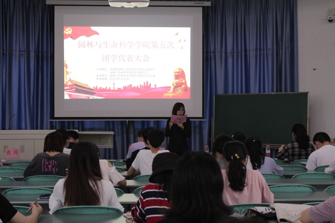 2020年6月28日园林与生命科学公司在听湖楼2600组织召开第五次团学代表大会正式会议。出席本次活动的有园林与生命科学公司党总支副书记孙翰昌教授,团总支书记贺方云,辅导员周凡力、黄威、肖川及公司团员代表共计120余人。本次会议由马雨洋同学主持。