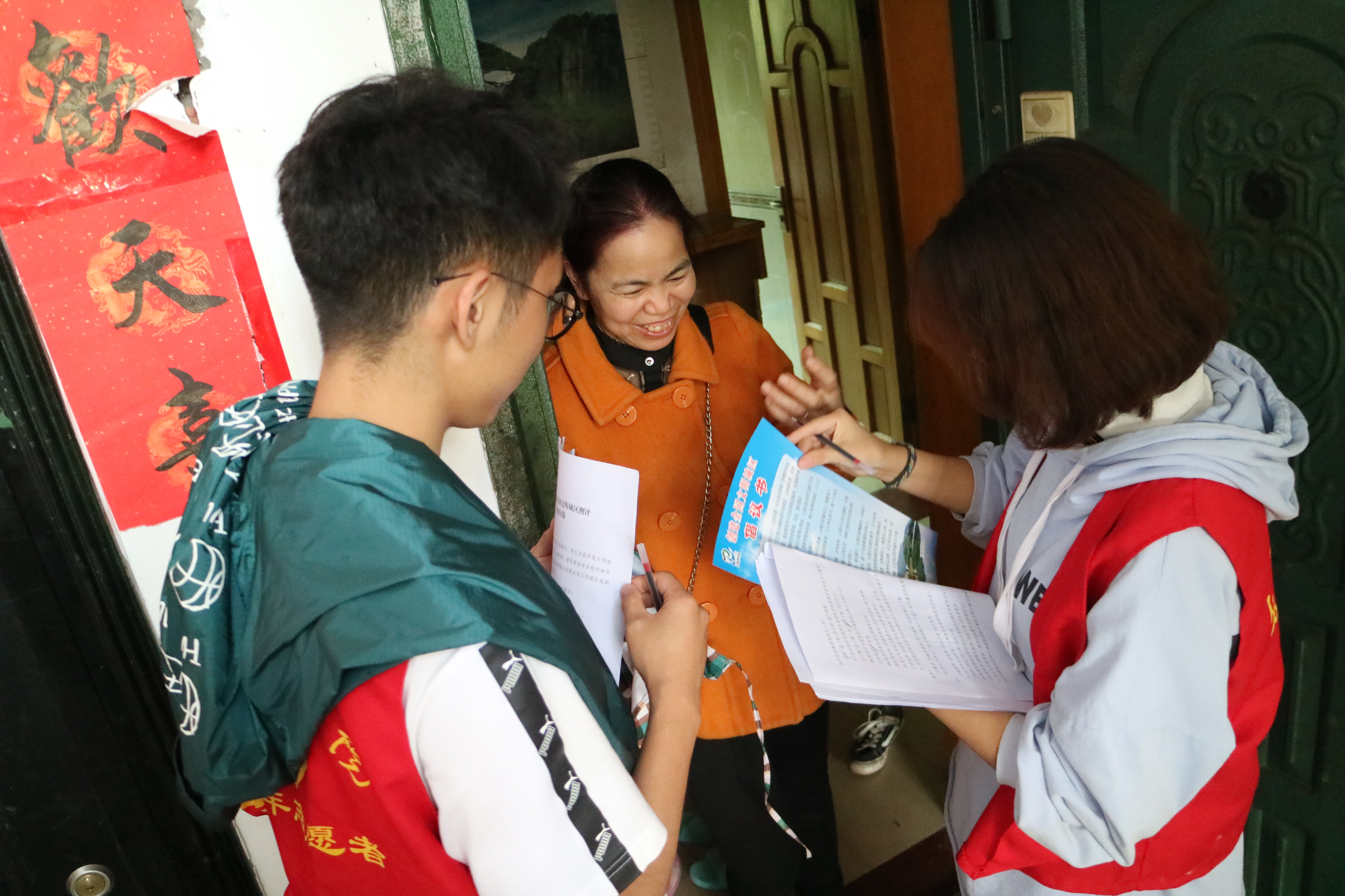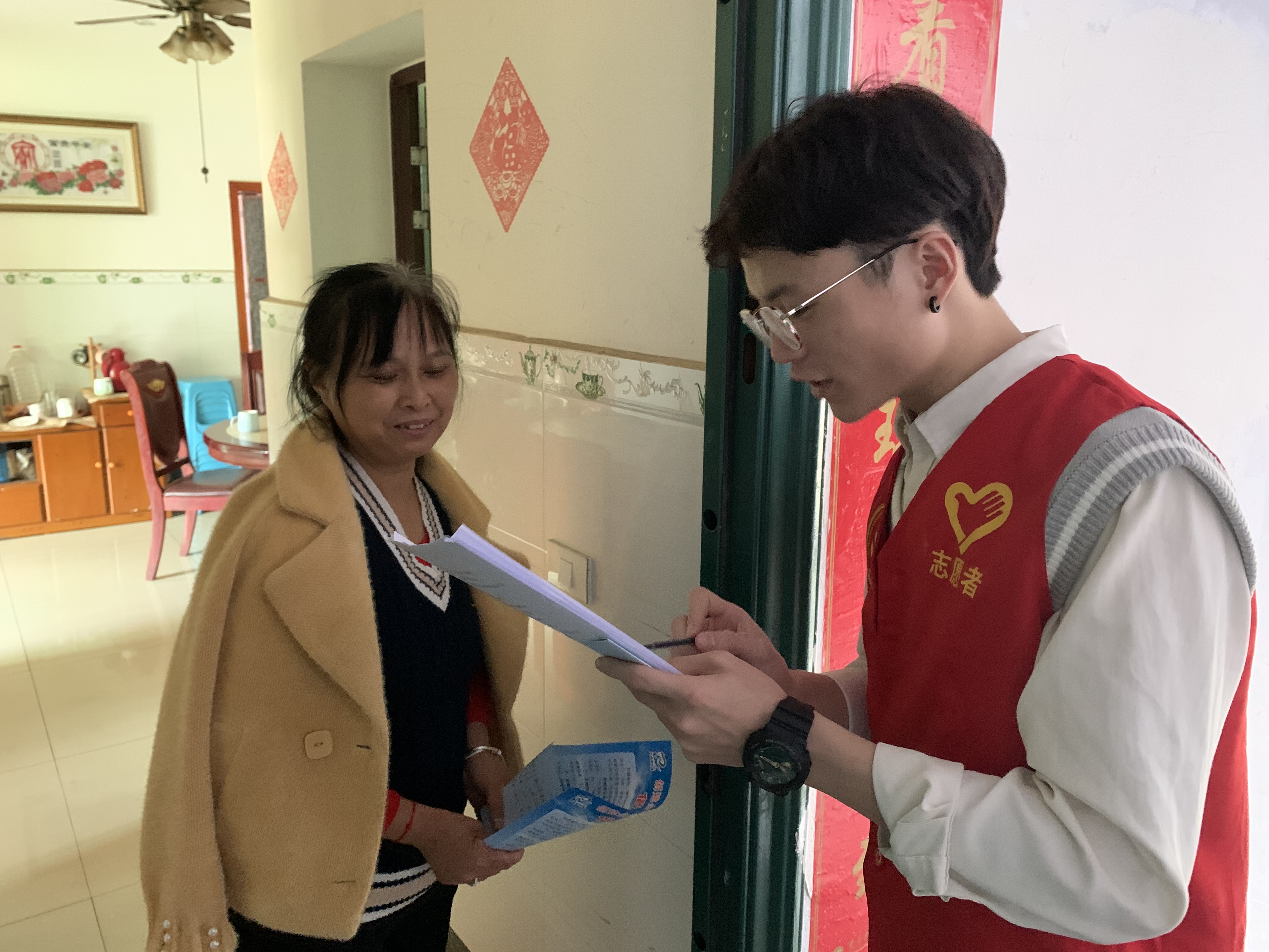 天空万里无云,风和日丽,志愿者们如约相聚在卫星湖社区志愿者之家。社区工作人员先对志愿者们进行了工作培训,随后员工会执行主席马雨洋同学根据参加活动人数以及需要调查的范围进行了明确的分工。志愿者们明确任务后,紧接着进入了工作状态。两两结对,挨家挨户的敲门访问:一位同学主负责居民楼敲门探路,另一位同学则负责调查问卷,他们相互配合,甚是默契。在活动中,志愿者们耐心的解答居民的各种疑惑,高效推进调查问卷工作开展。