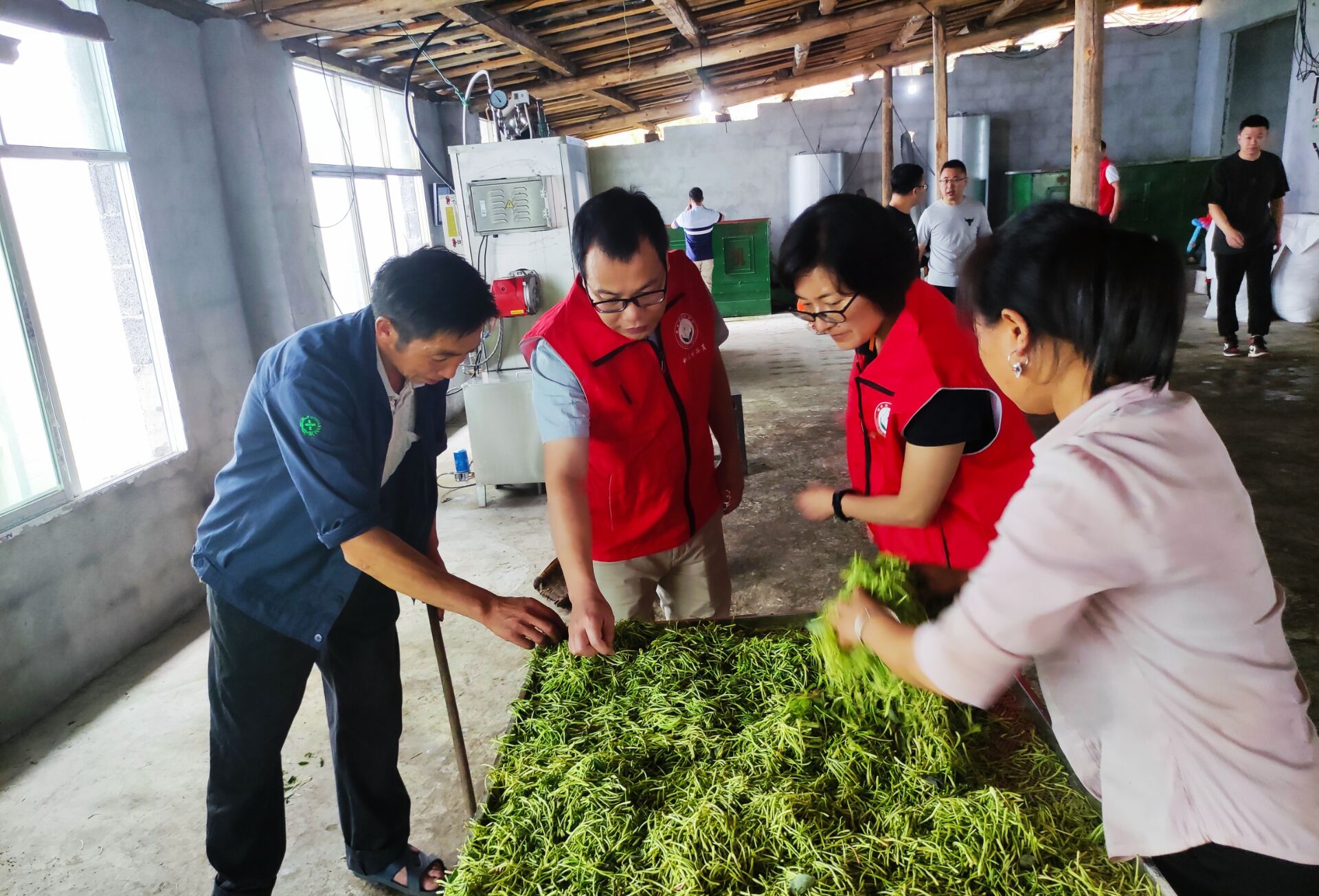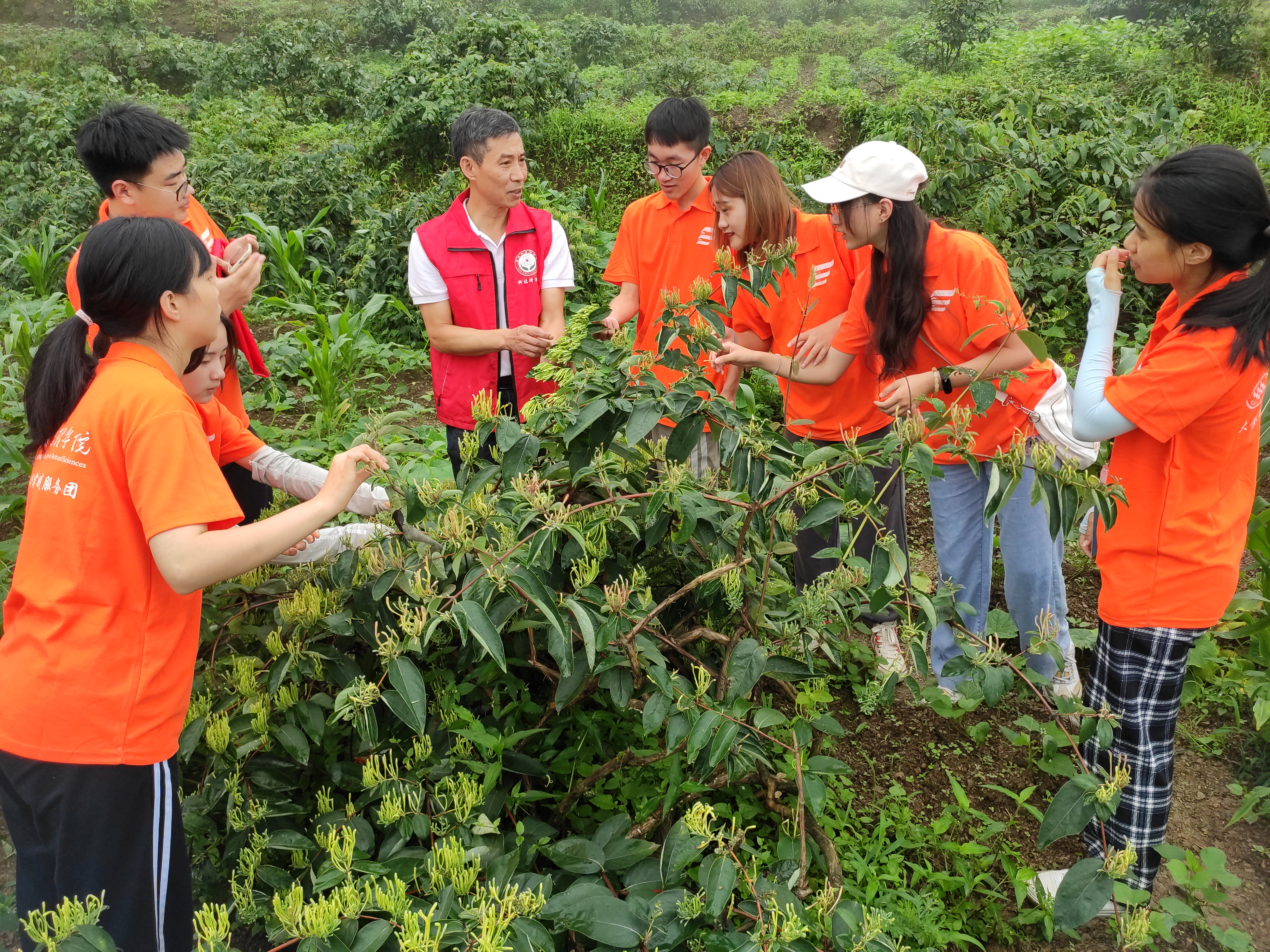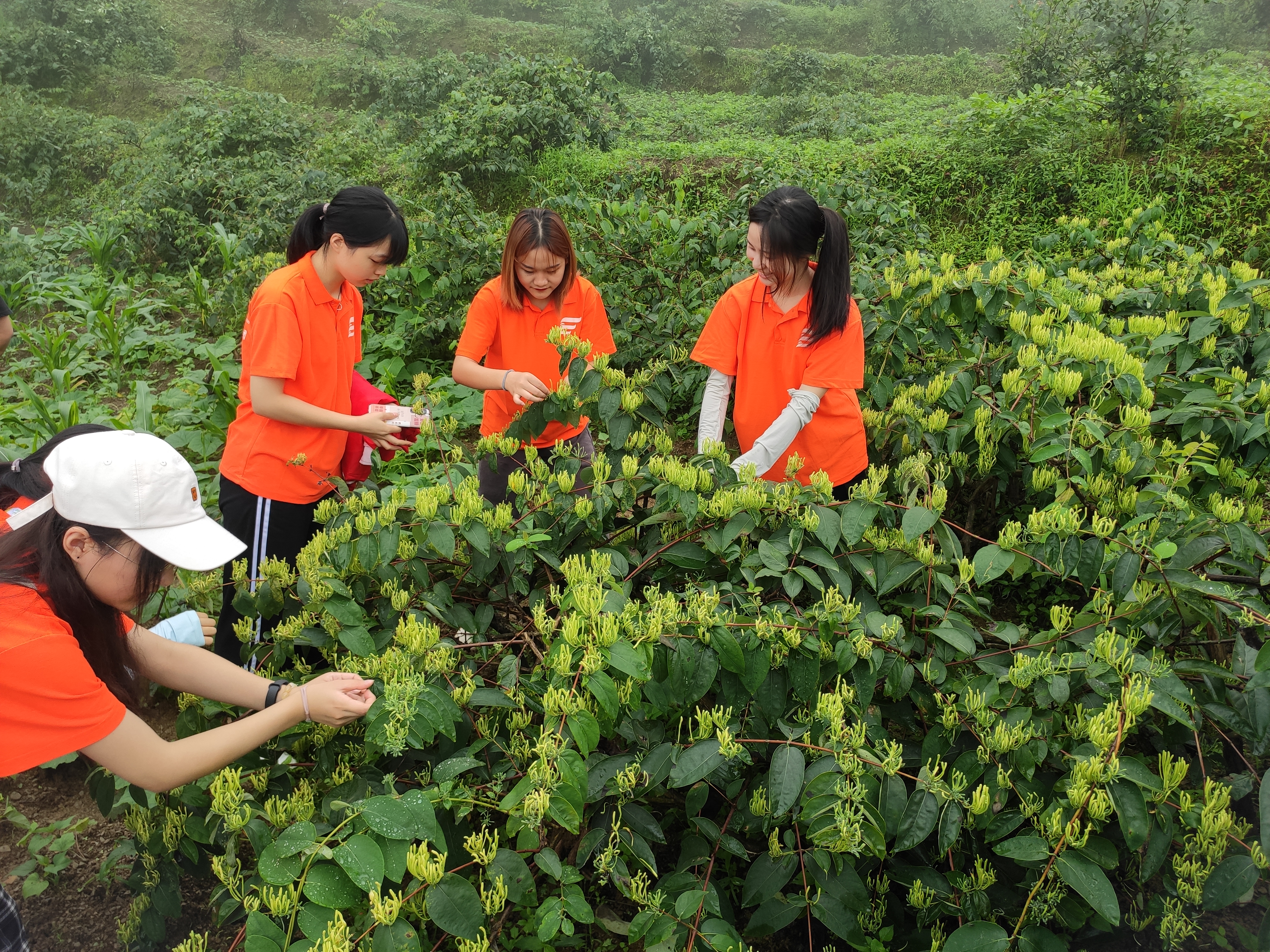 6日上午,一行人前往桐梓镇香树村,正值金银花采摘旺季,分队成员在村委和村民的带领下前往金银花种植基地采摘金银花,将采摘下来的金银花及时送往当地金银花加工厂,参与到金银花的挑选、杀青、烘干和装袋生产过程中。随后,分队成员与村委干部一起座谈,就目前金银花种植、田间管理、病虫害防治、销路模式和种植新的经济作物等方面进行了深入探讨。