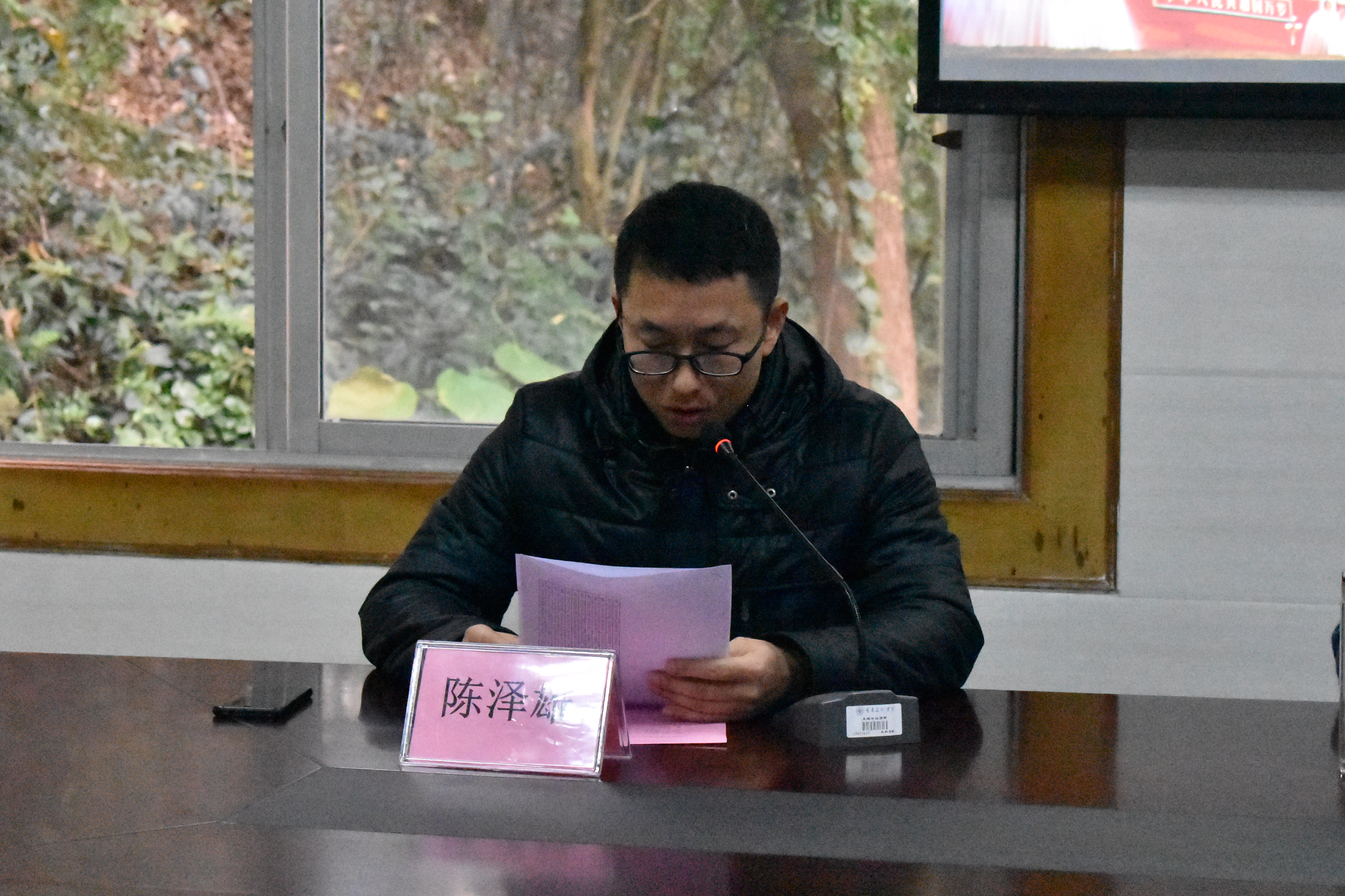 会议在嘹亮而雄壮的《国际歌》歌声中隆重开启。首先陈泽雄宣读新入党同志名单,刘小利书记向新党员代表发放入党通知书和党徽。员工党员杨燕婷同学带领新党员面向党旗,握拳庄严宣誓,随后新党员代表罗兴宇同学发言表态。