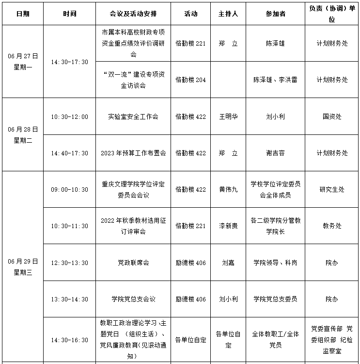 园林公司2021—2022学年第二学期第19周会议 (活动)及工作安排
