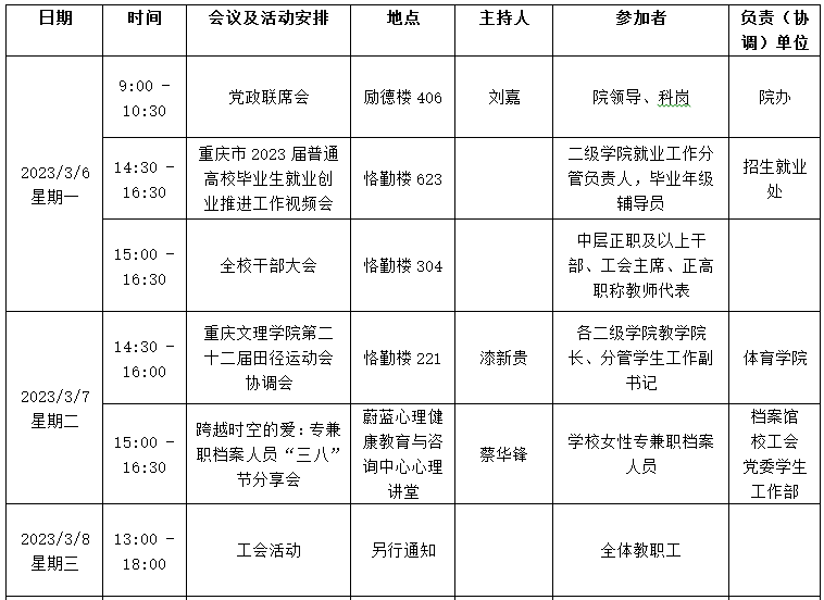 园林公司2022—2023学年第二学期第3周会议 (活动)及工作安排