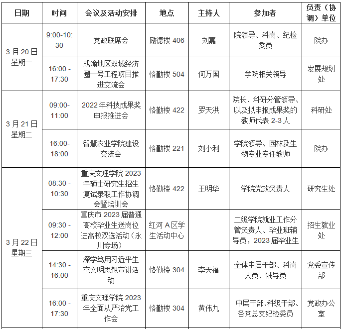 园林公司2022—2023学年第二学期第5周会议 (活动)及工作安排
