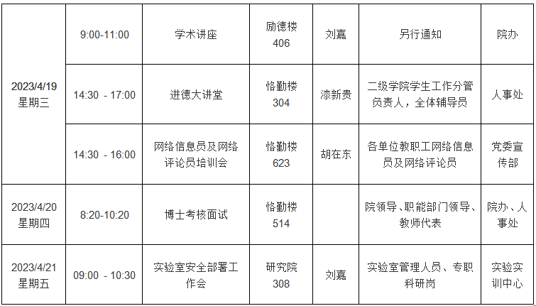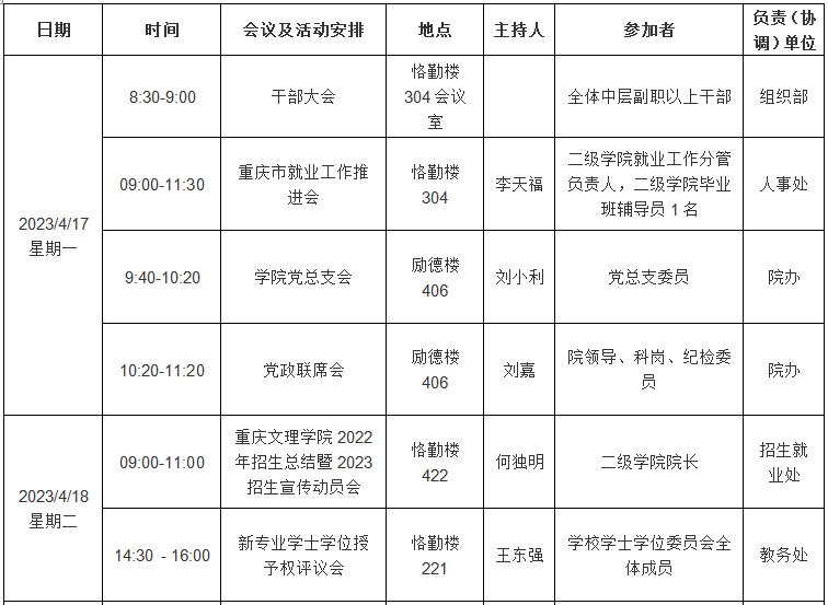 园林公司2022—2023学年第二学期第9周会议 (活动)及工作安排
