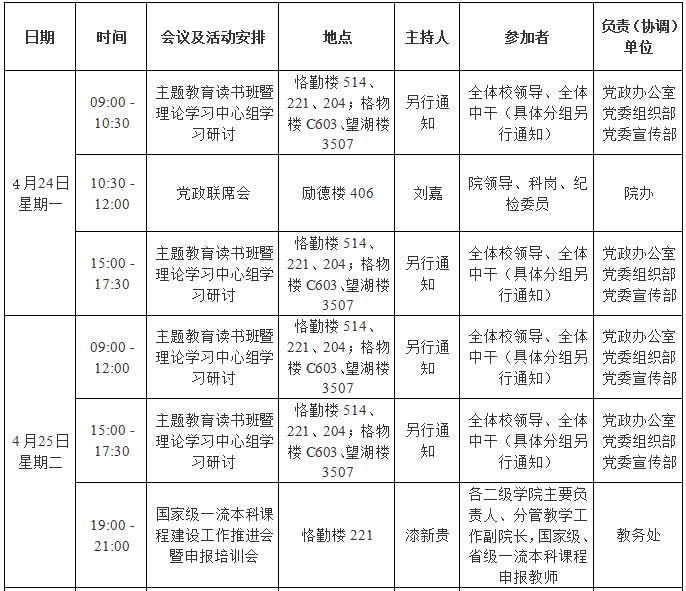 园林公司2022—2023学年第二学期第10周会议 (活动)及工作安排