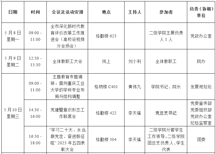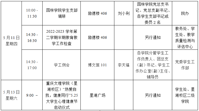 园林公司2022—2023学年第二学期第12周会议 (活动)及工作安排