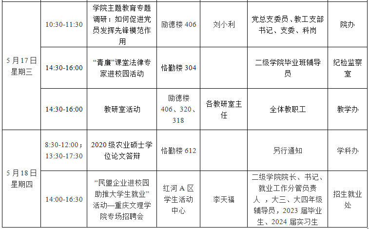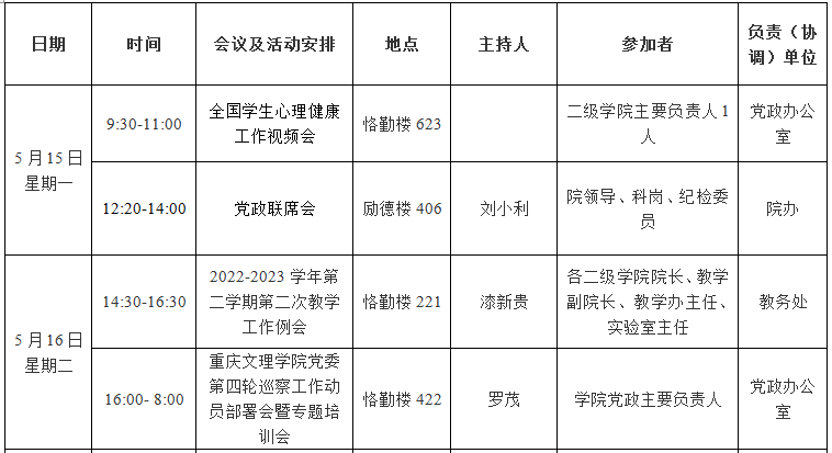 园林公司2022—2023学年第二学期第13周会议 (活动)及工作安排