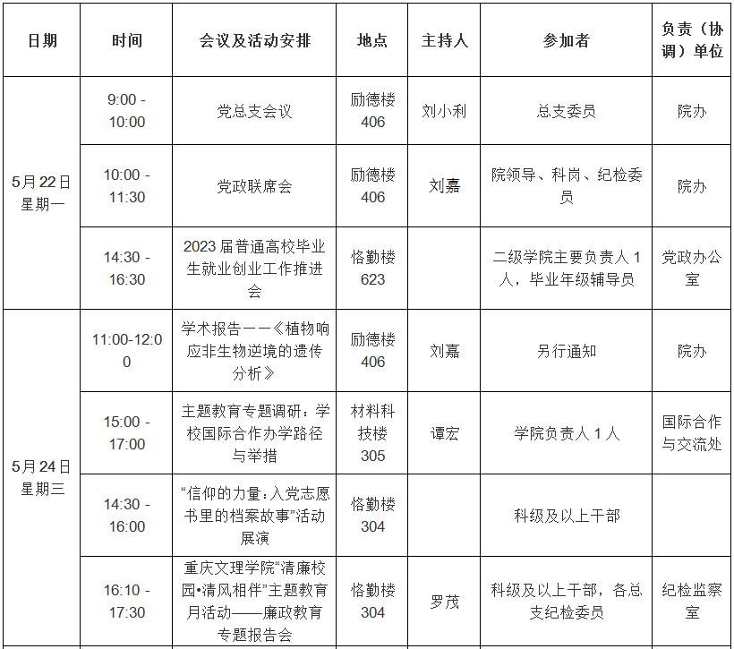 园林公司2022—2023学年第二学期第14周会议 (活动)及工作安排