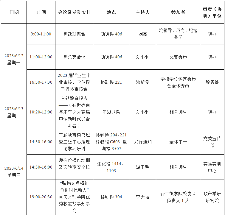 园林公司2022—2023学年第二学期第17周会议 (活动)及工作安排