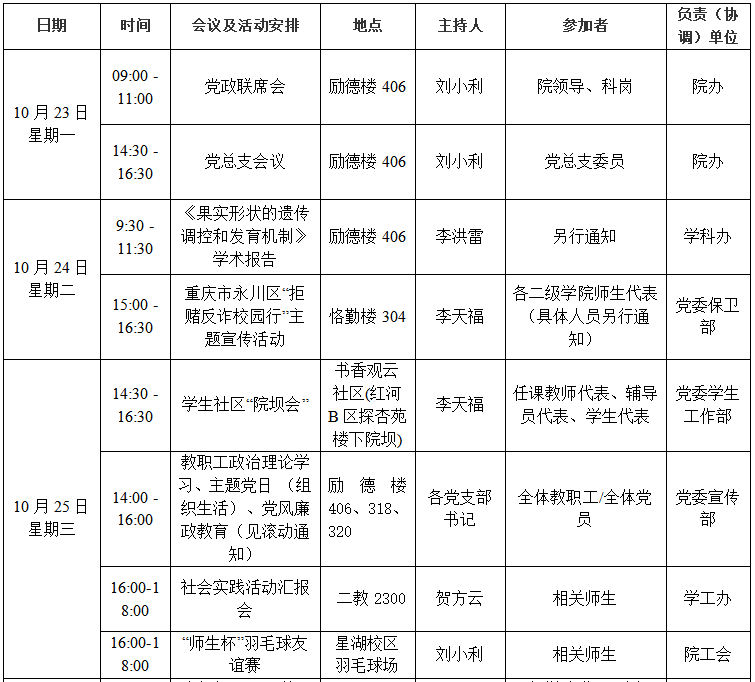 园林公司2023—2024学年第一学期第7周会议 (活动)及工作安排