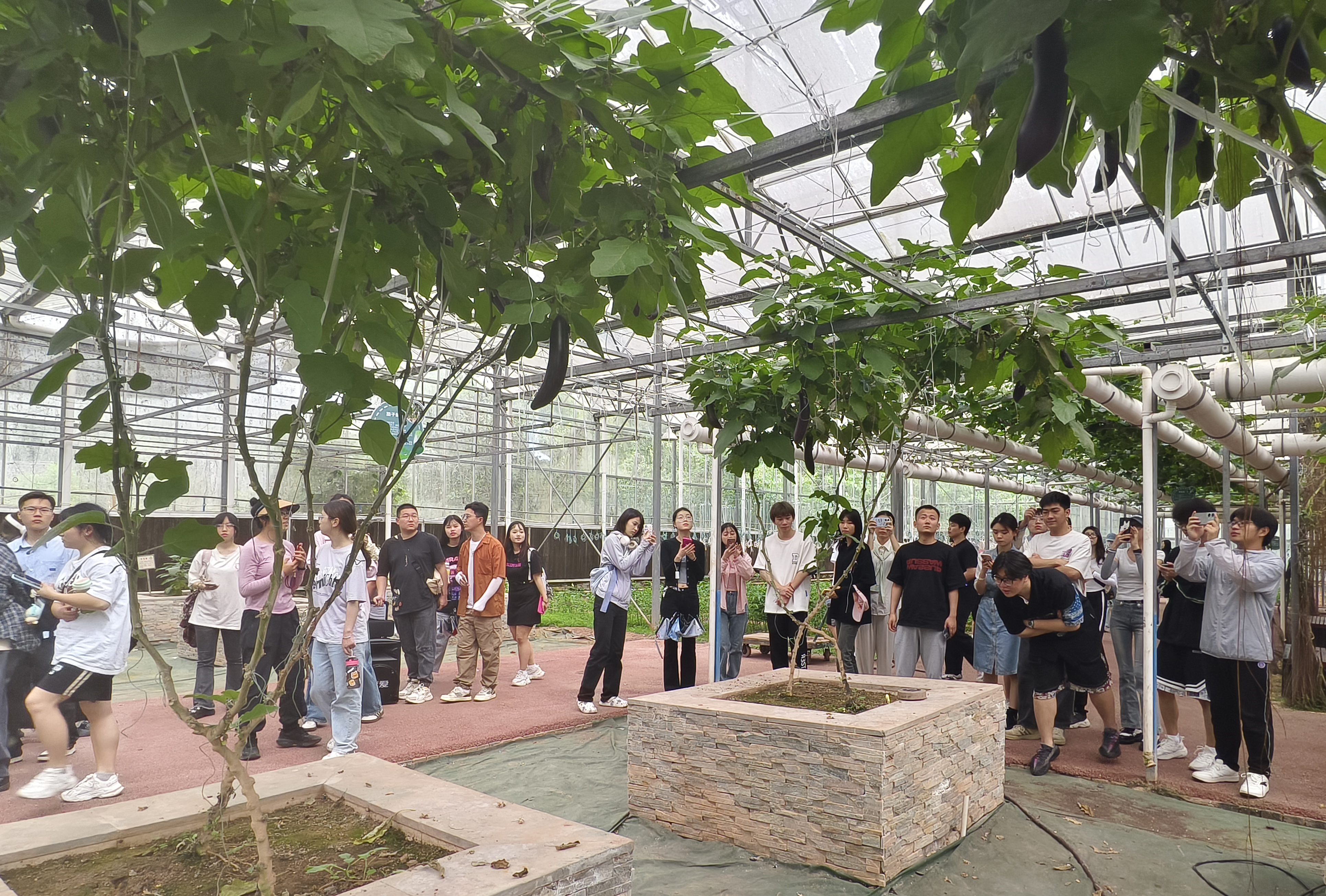 随后,员工们参观了潼南国家农业科技园区蔬菜博览中心,了解了果蔬有机土栽培、水培、雾培、袋培、立式等多种设施栽培技术,并在刘婷老师的介绍下,对各种蔬菜的新奇品类、种源由来、生长周期以及种植技巧有了进一步的认识。