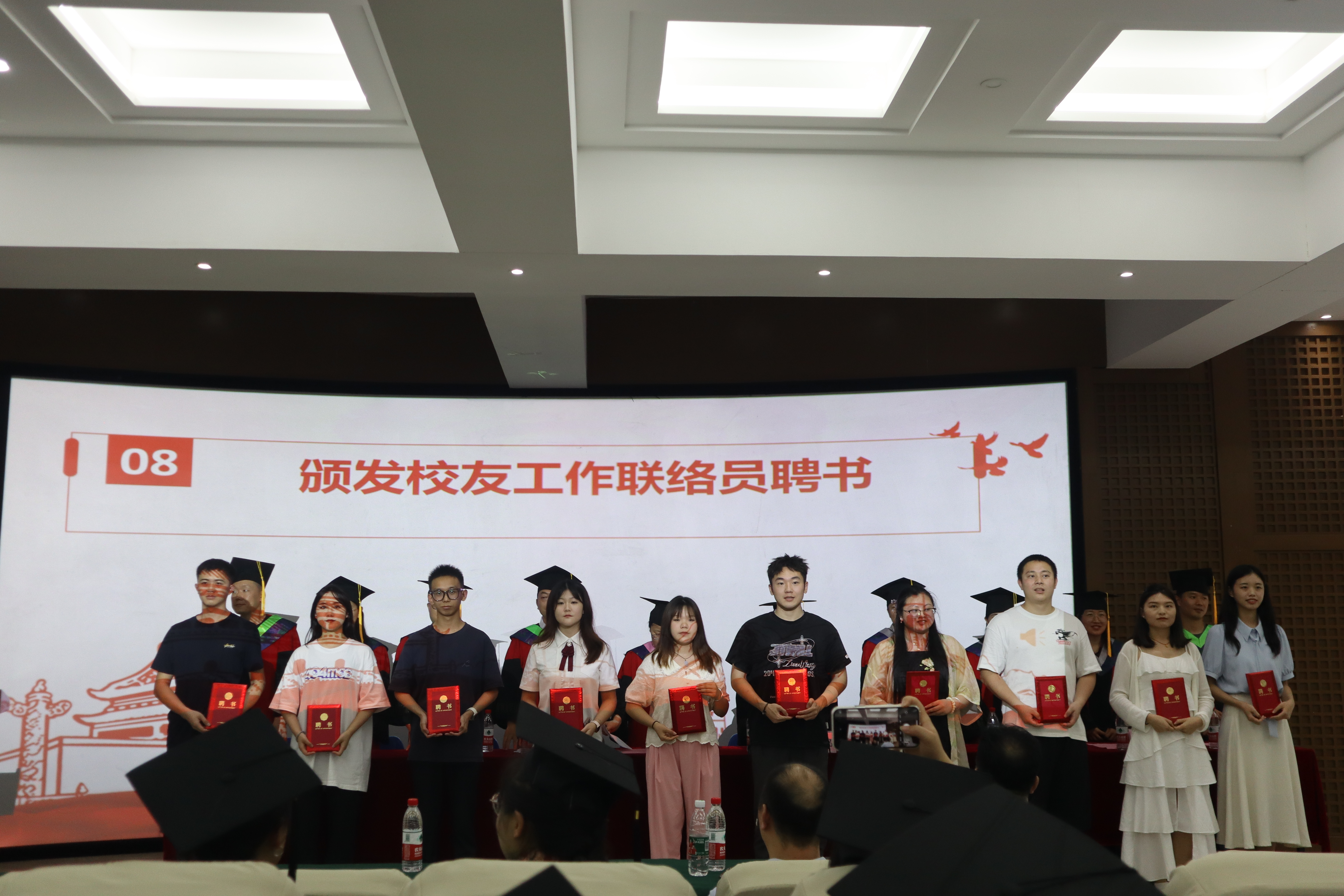 李洪雷宣读校级、市级优秀毕业生表彰文件,为优秀毕业生代表办法荣誉证书。刘小利宣读聘任员工工作联络员文件,为员工工作联络员颁发聘书。接着,与会领导和老师为毕业生颁发毕业生纪念品。刘小利总结讲话,寄予毕业生同学们。在授位环节,刘小利宣读了2024届毕业生学士学位授位文件,公司全体学位委员会委员集体为毕业生授位。