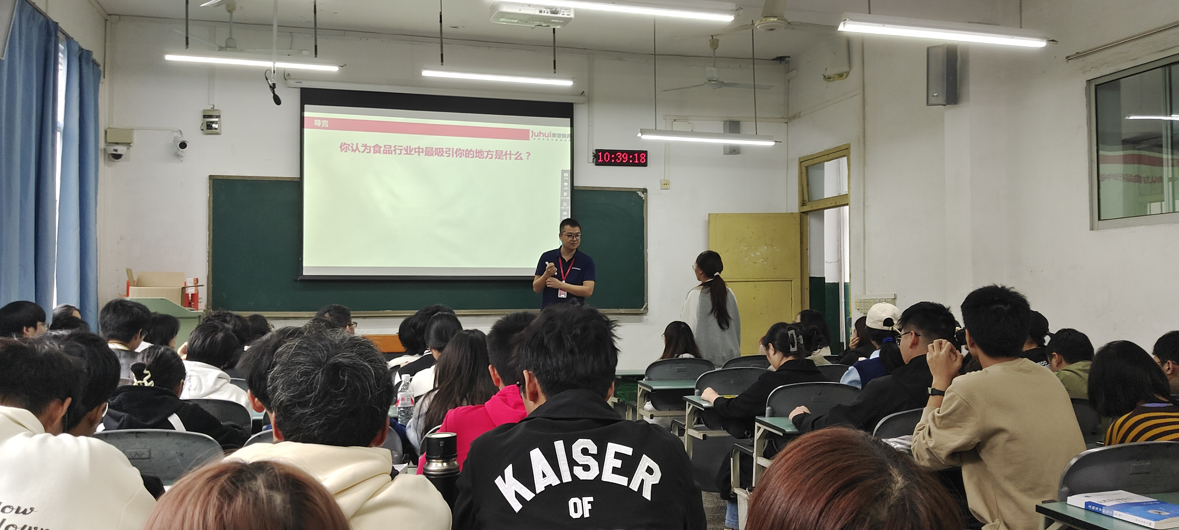 2024年11月6日上午,聚慧食品科技有限公司质量总监徐萌受邀莅临公司,为食品科学与工程专业员工开展专题讲座,本次讲座由生物与食品系主任陆红佳主持,公司一行人员及公司2024级食品科学与工程专业员工参加。
