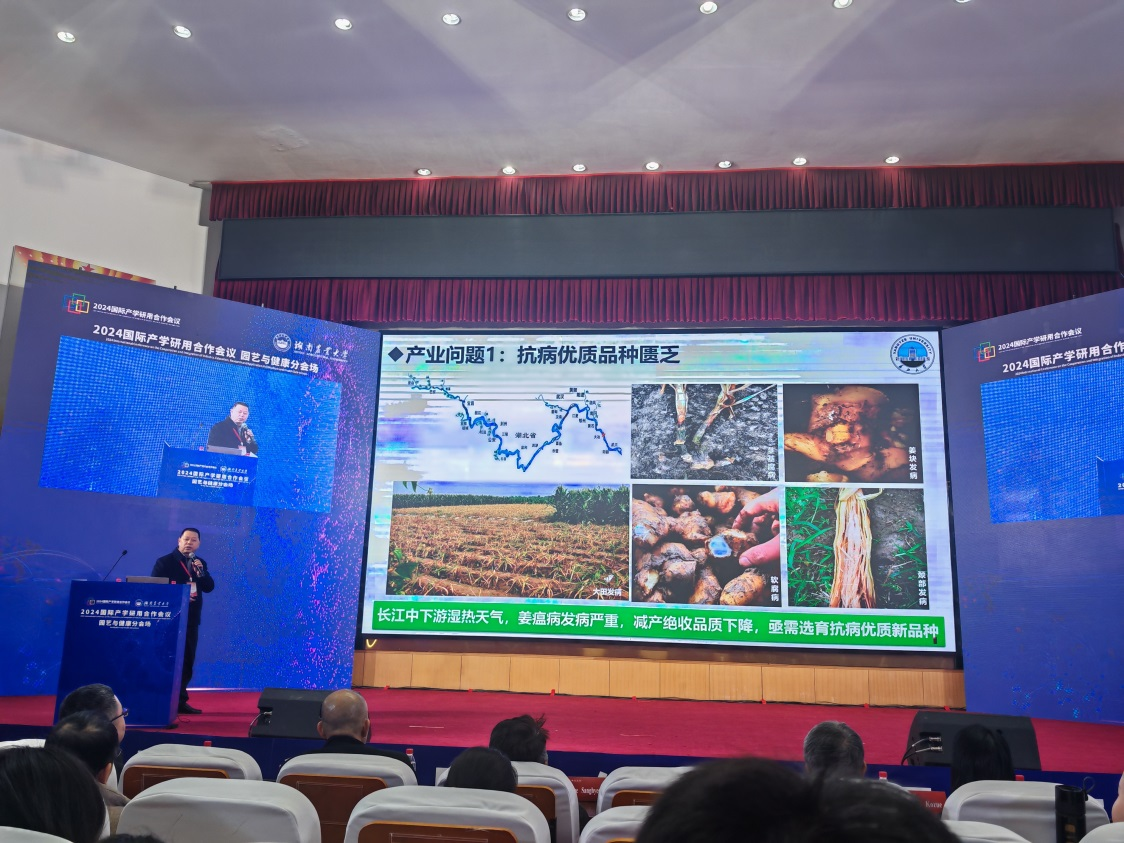 公司孙翰昌副书记、刘奕清教授应邀参会,刘奕清教授作了“抗病优质生姜新品种选育及生态种植技术创新应用”的大会主旨报告。