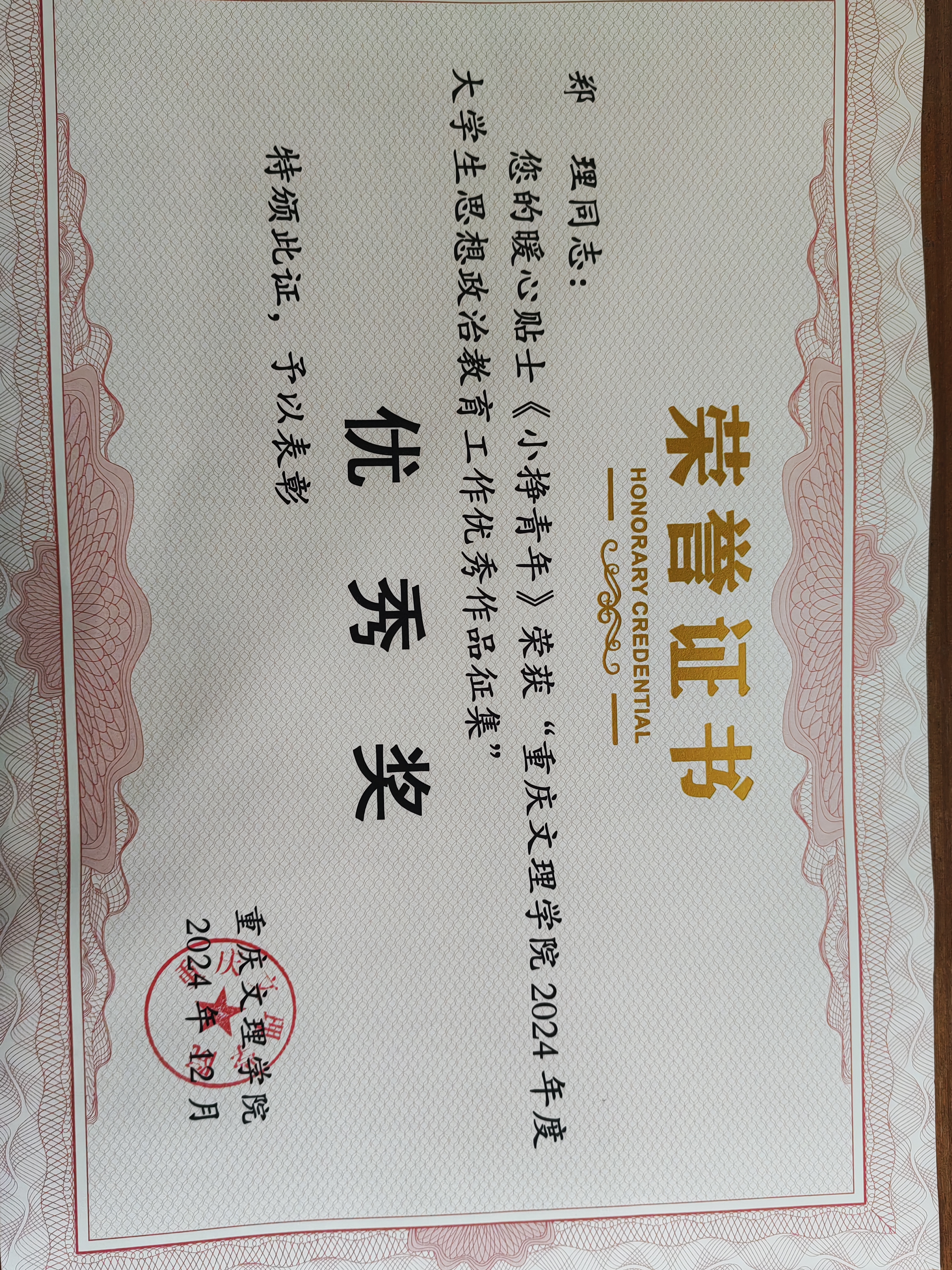 在第二届“心起点、新征程、共成长”高校心育共建优质资源征集活动中,周凡力老师的作品获暖心贴士类重庆市三等奖。