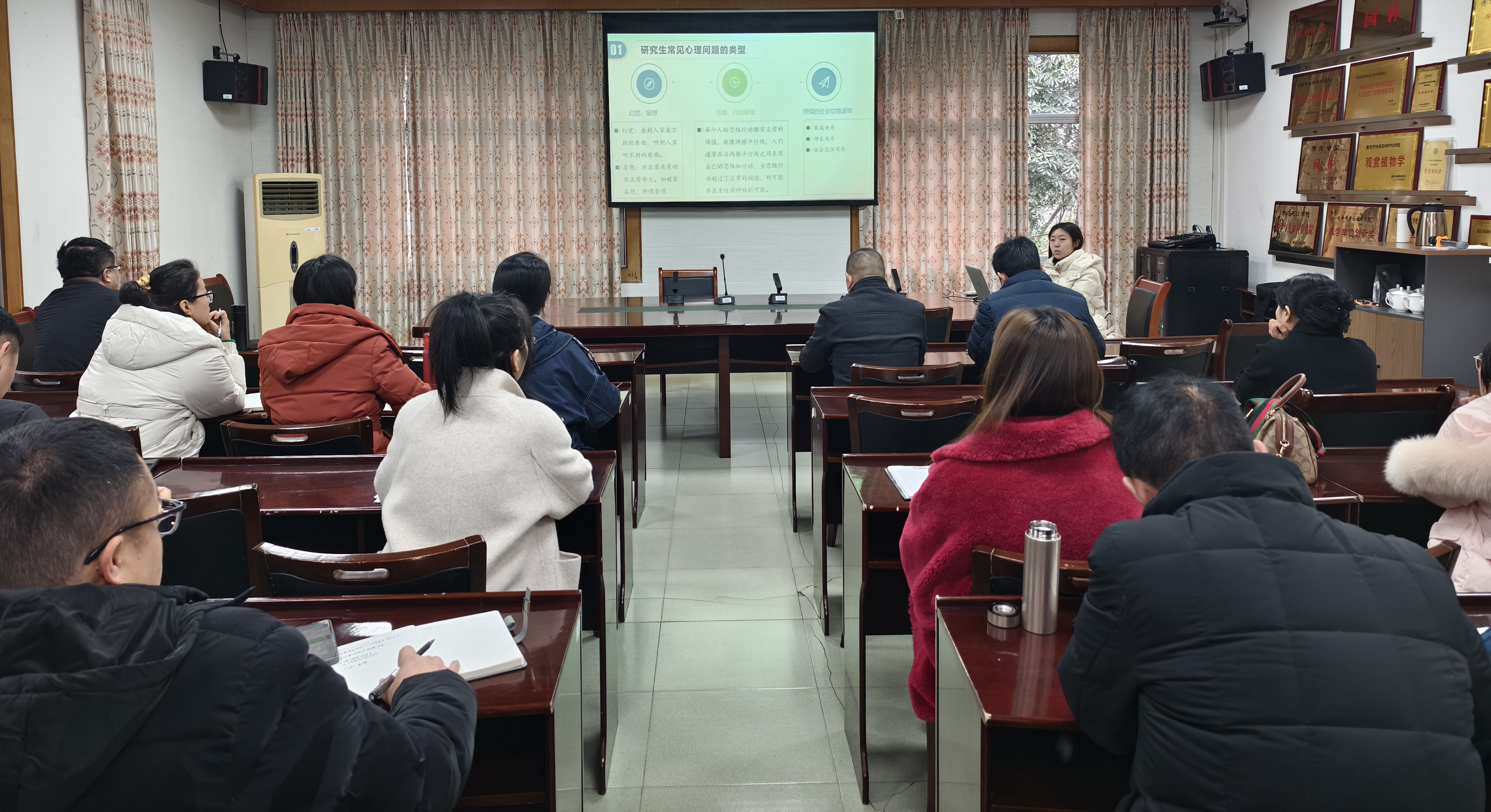 为进一步加强研究生导师队伍建设,促进师生间的良好沟通与合作,全面提升研究生心理健康水平,公司于2024年12月30日上午在励德楼406会议室开展了研究生导师心理健康教育培训活动。本次培训邀请蔚蓝心理健康教育与咨询中心刘筱老师主讲,公司全体研究生导师及研究生管理人员参加了此次会议,会议由公司经理陈泽雄主持。