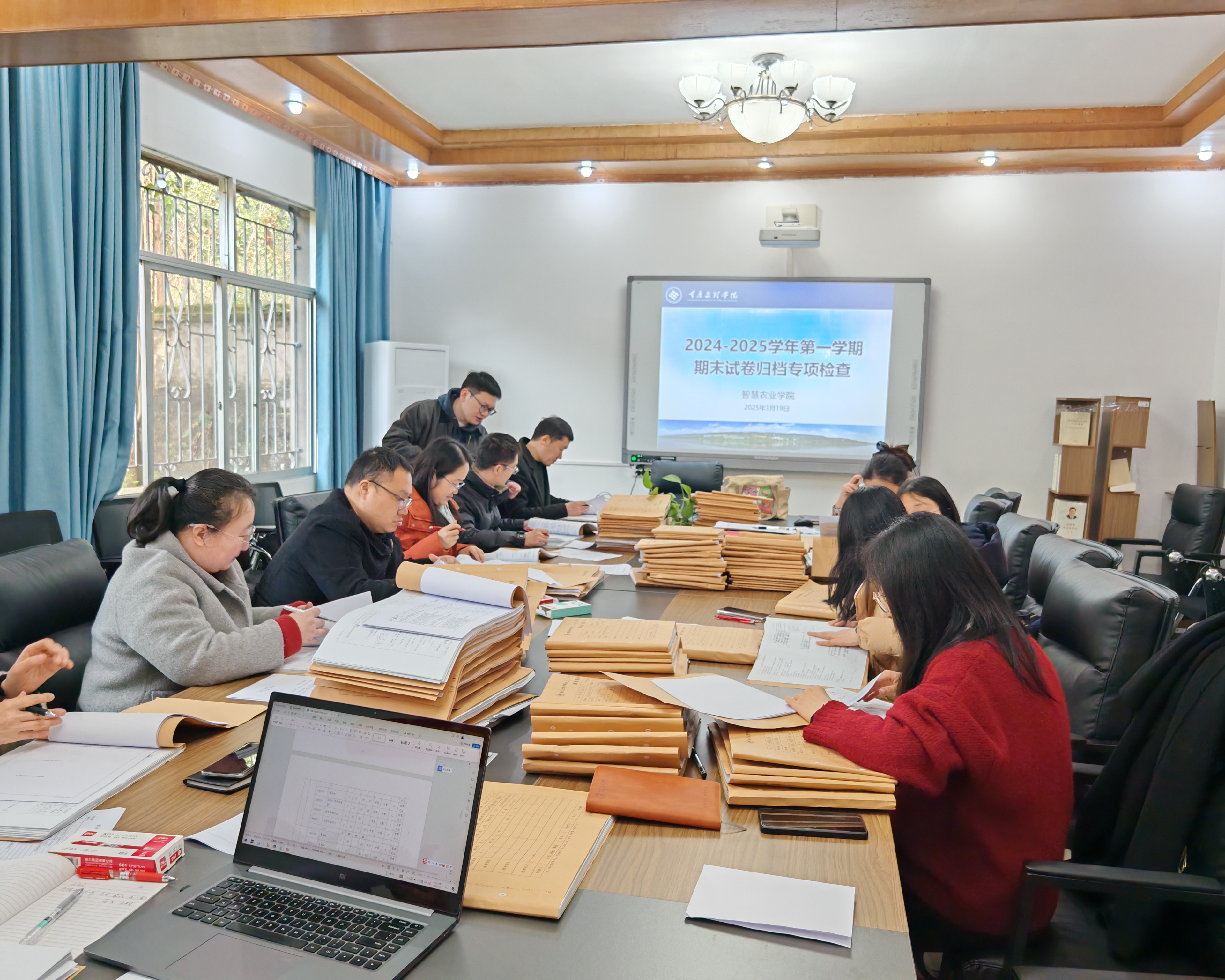 3月19日下午,公司组织各系主任及骨干教师在励德楼318会议室对2024-2025学年第一学期期末试卷归档材料进行了专项检查。