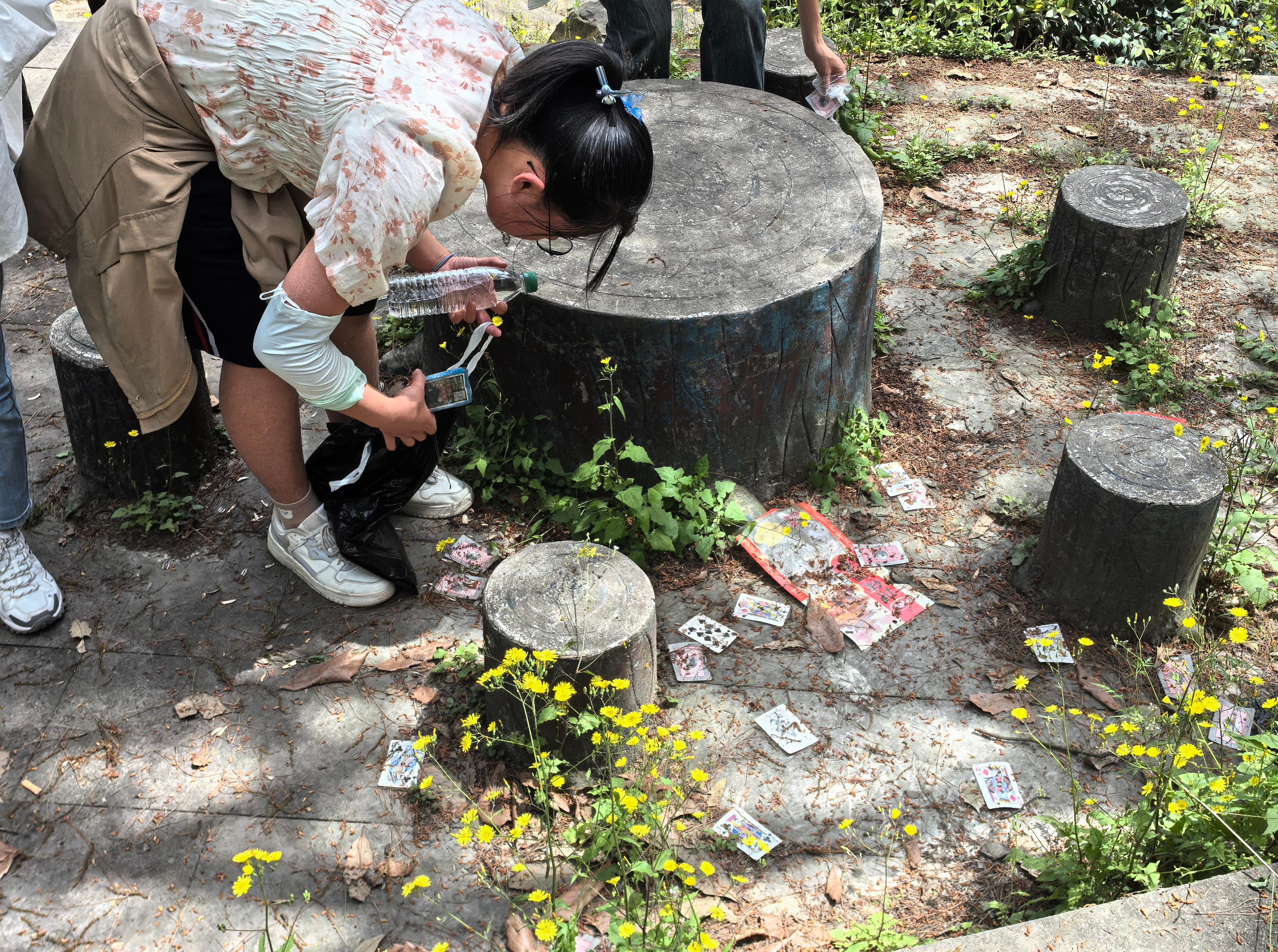 指导老师刘华敏主持召开简短的动员仪式后,全体人员沿既定路线投入环境清理与垃圾分类实践中。