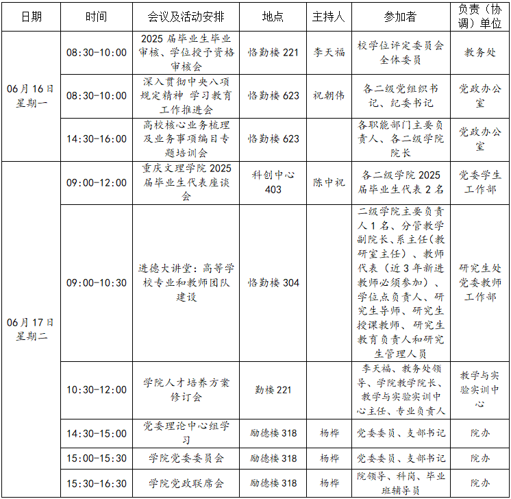 365英国上市集团2024—2025学年第二学期第17周会议(活动)及工作安排