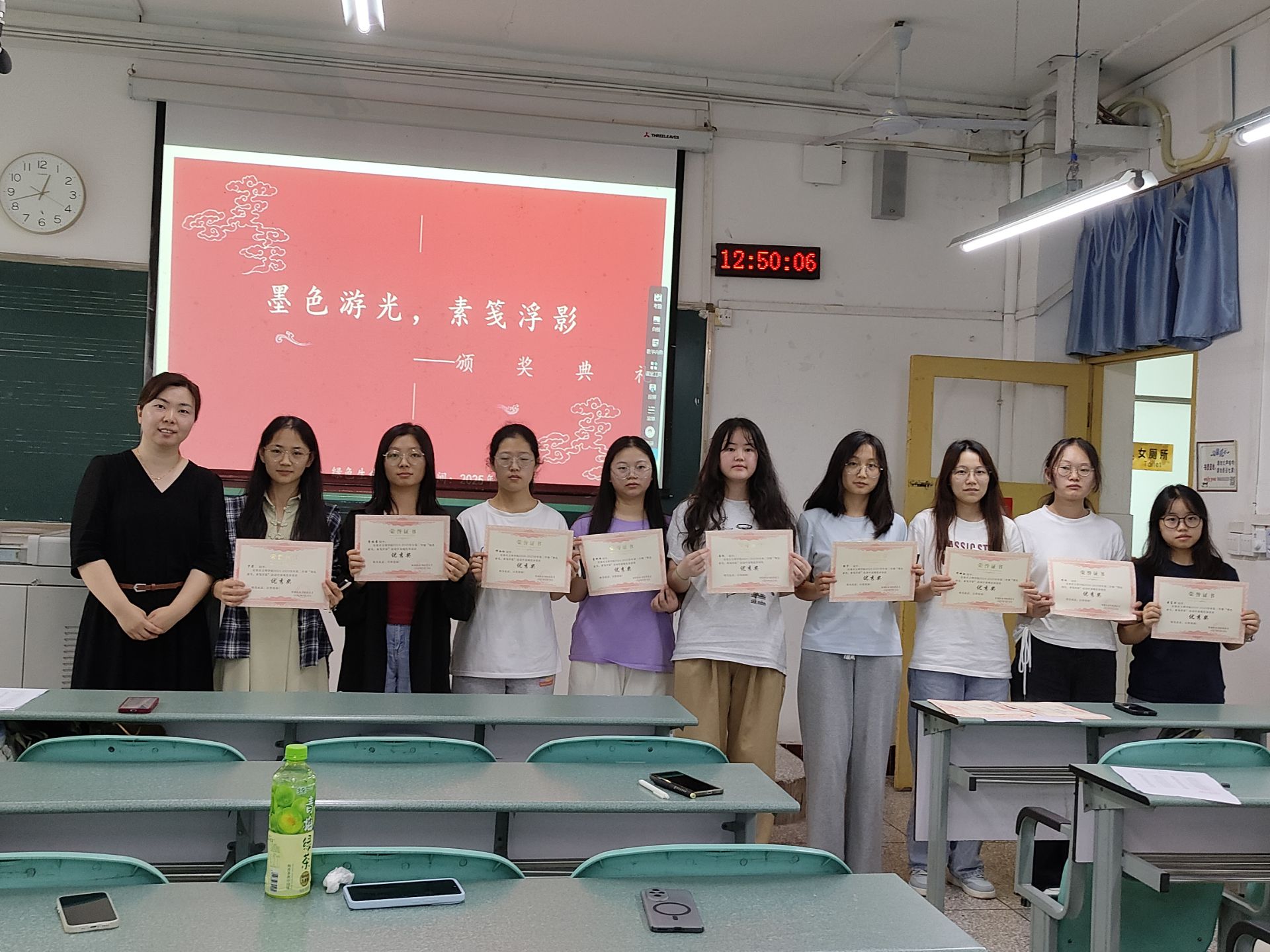 经评审,35件优秀作品脱颖而出,获奖者获颁定制奖状及印有“绿色生命协会”logo的纪念笔。活动尾声,获奖作品同学集体领奖,指导老师黄威也进行了活动总结。