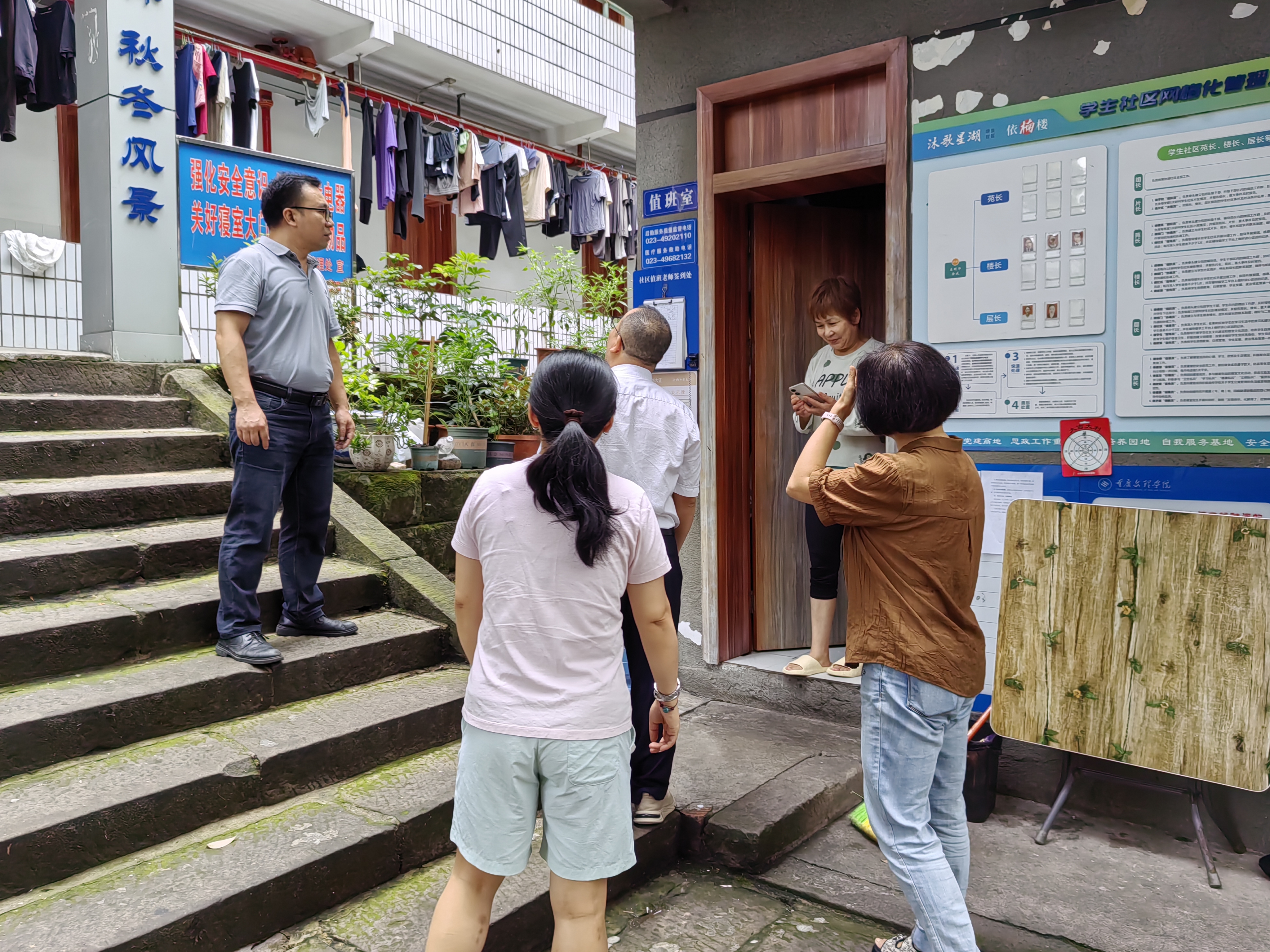 走访过程中,老师们重点检查了宿舍内的消防安全、用电安全以及公共区域卫生情况,对可能存在的安全隐患进行了排查,特别是乱拉电线、超负荷用电等危险行为,提醒员工离开宿舍时要切断电源,以防止火灾和其他安全事故的发生。同时,还与宿舍管理人员进行交流和沟通。