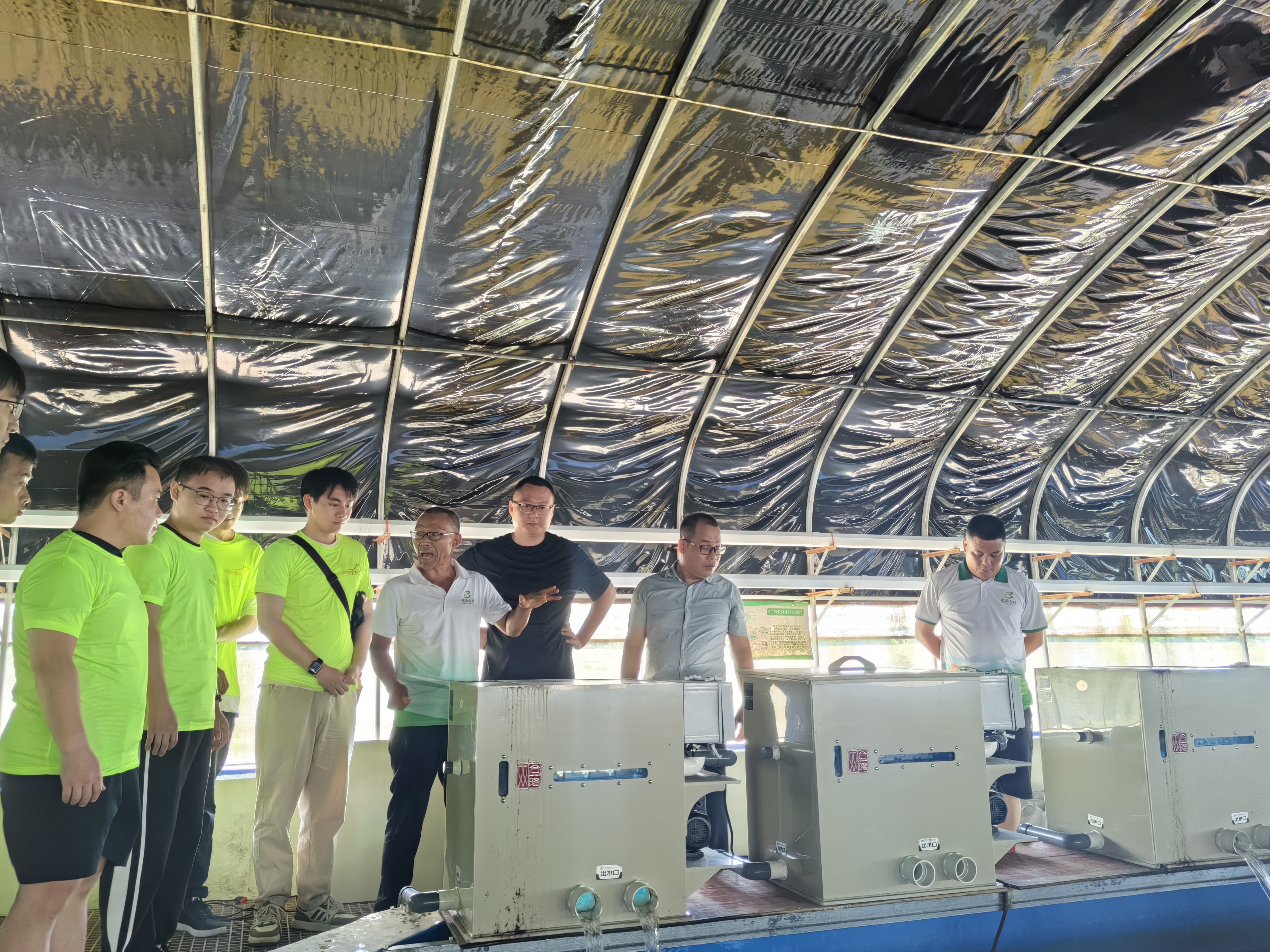 下午开展交流座谈,公司总经理郭永昌带领各块负责人与实践团队师生围绕养殖水源、水质精准调控、智慧设施设备研发与应用、特色水产业发展、员工实习与就业等主题交流座谈,相互交换了意见,达成后期合作共识。