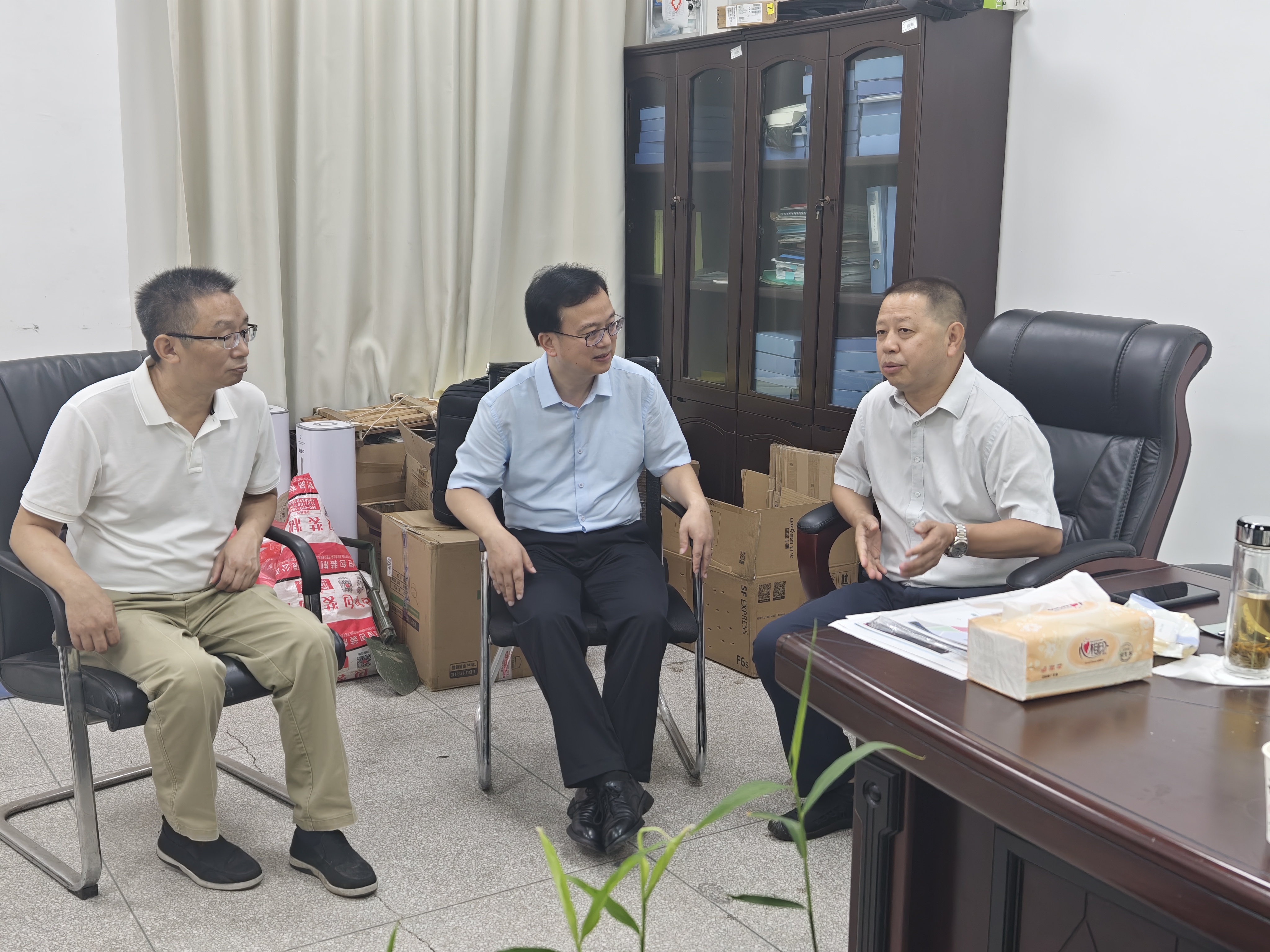 在特色植物研究院实验室,祝朝伟与留校教师和研究生亲切交谈,询问暑期科研计划、留校学习、生活情况,提醒大家注意防暑防晒,保持规律作息,加强科学研究,提升关键创新能力;在特色植物研究院办公室,祝朝伟亲切看望了国家万人计划领军人才刘奕清教授,对其在特色香辛植物生姜研究中取得的成绩给予了高度评价,勉励再创佳绩;在特色植物研究院实验基地,陈泽雄向祝朝伟介绍了科研团队在青花椒研究方面取得的最新进展。