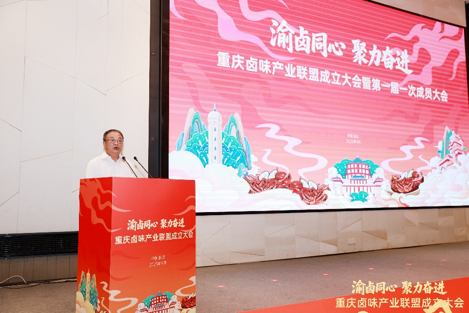 2025年9月26日下午,由重庆市经济和信息化委员会指导、重庆市食品工业协会牵头举办的重庆卤味产业联盟成立大会在重庆渝北举行。大会以“渝卤同心,聚力奋进”为主题,聚焦“资源整合、协同创新、标准共建、品牌共塑”四大核心方向,旨在凝聚产业合力,将“重庆卤味”打造为具有全国影响力的美食名片。市级有关部门负责人、各区县食农专班负责人、有关行业协会及食品企业代表等260余人齐聚现场,共襄这一产业盛事。副经理游玉明及相关骨干教师受邀参会。