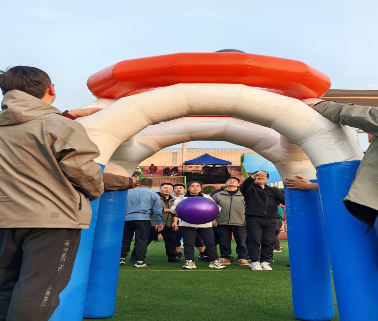 清脆哨声中,教职工趣味运动会拉开帷幕。平日里传道授业的智农教师,在赛场迎来 “高光时刻”:蓝黄充气球在合力托举下似跳动彩虹,紫色瑜伽球在笑语中稳传,每一次交接都凝满信任与默契。老师们暂放下教案粉笔,弓步撑球时紧扣手臂显协作之力,抬手托举时专注眼神露团队执着,将讲台 “严谨细致” 转化为赛场 “默契配合”,生动诠释 “共担风雨、共融一心、共进向前” 的团队内核,让教育温度在赛场传递。