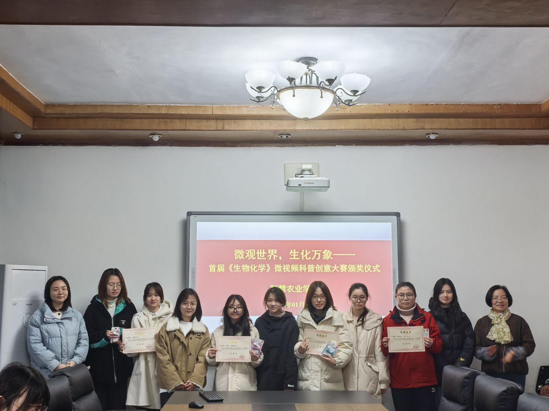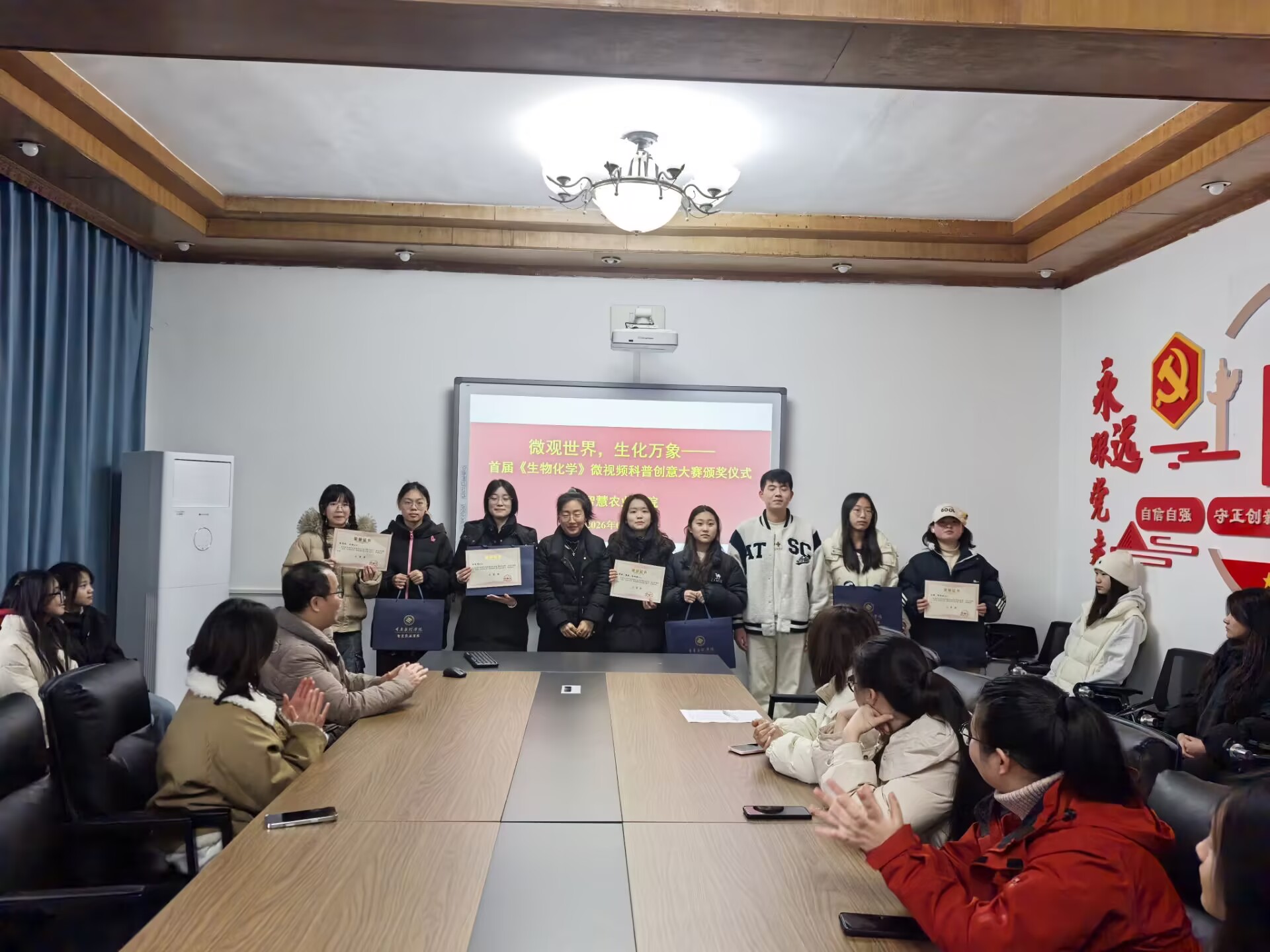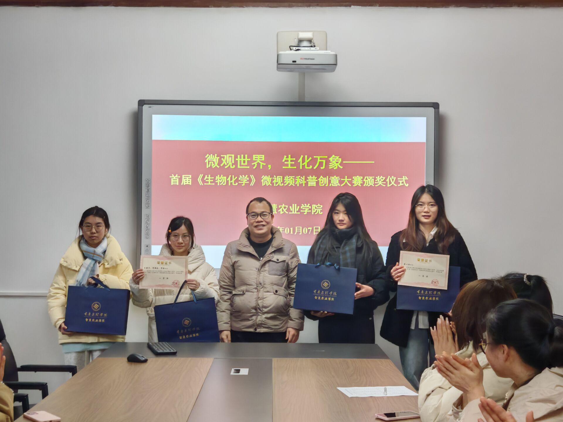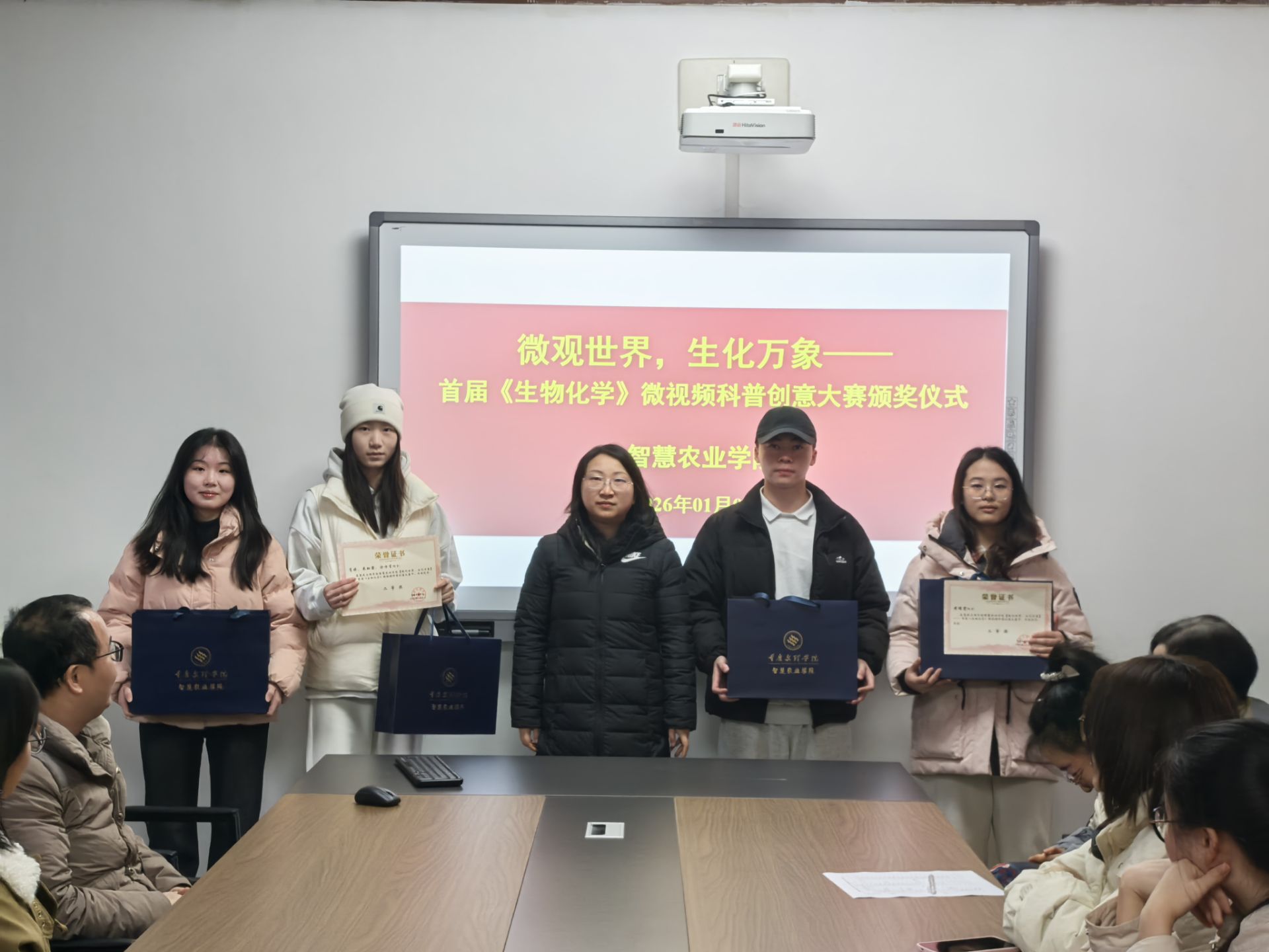 2026年1月7日上午,365英国上市集团首届生物化学微视频科普创意大赛颁奖仪式在励德楼318会议室举行。副书记孙翰昌、教学与实验实训中心主任邓欢、食品与生物系主任陆红佳、教师代表以及员工代表出席了本次活动。