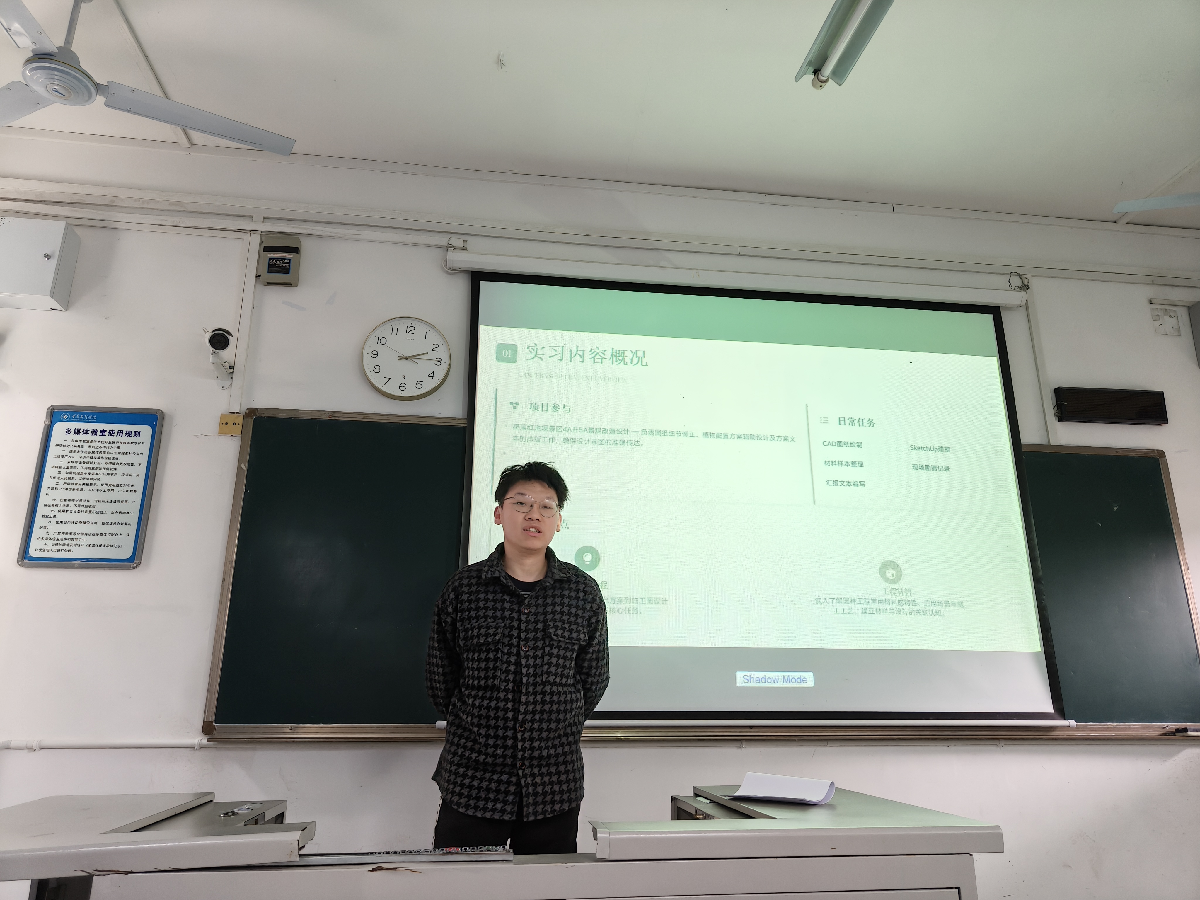 汇报过程中,毕业生们围绕实习岗位履职情况展开详细阐述,通过实习场景纪实照片、典型业务案例复盘等形式,直观还原实习全流程中的实践探索与成长轨迹。同时,同学们结合实习经历分享了专业技能提升、职业认知深化等收获,深入剖析自身在岗位能力、沟通协作等方面的不足,并明确了后续职业能力提升的具体方向。评审教师通过查看员工在员工邦系统打卡和周志提交情况,结合提问、点评等方式,从实习内容贴合度、专业能力锤炼效果、实习态度端正度及实践成果价值等,对毕业生实习成效进行全面复盘与客观评估。