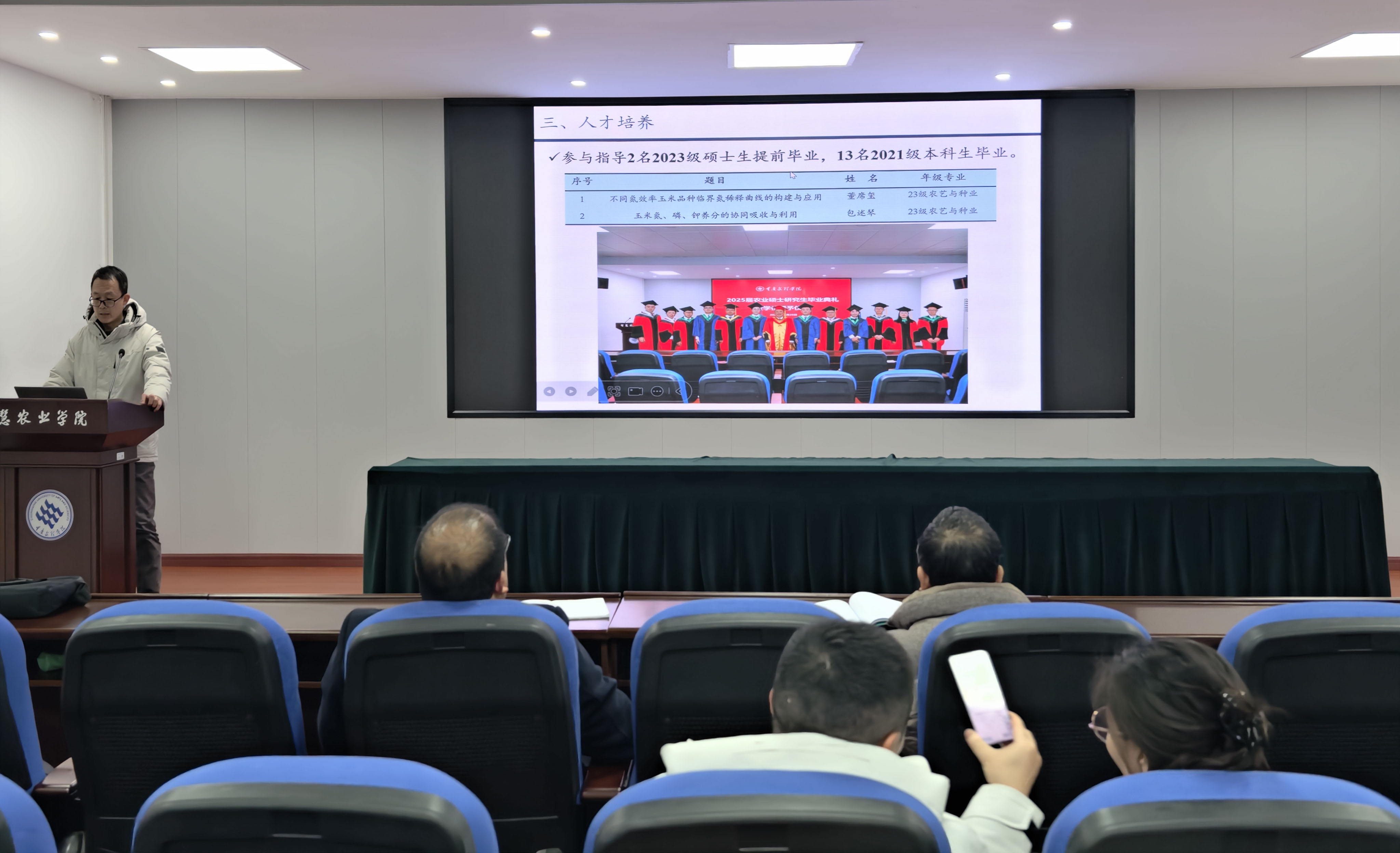 随后,全体专职科研岗教师紧扣岗位职责,围绕科研进展、教学履职、社会服务及未来规划进行了全面阐述,系统梳理了在高质量论文发表、专利授权、成果转化及科技服务等方面取得的成绩。大家对标年度考核指标,客观剖析了存在的不足,并对2026年的工作重点进行了前瞻性谋划。